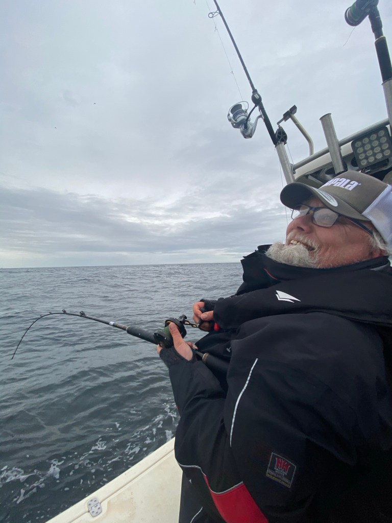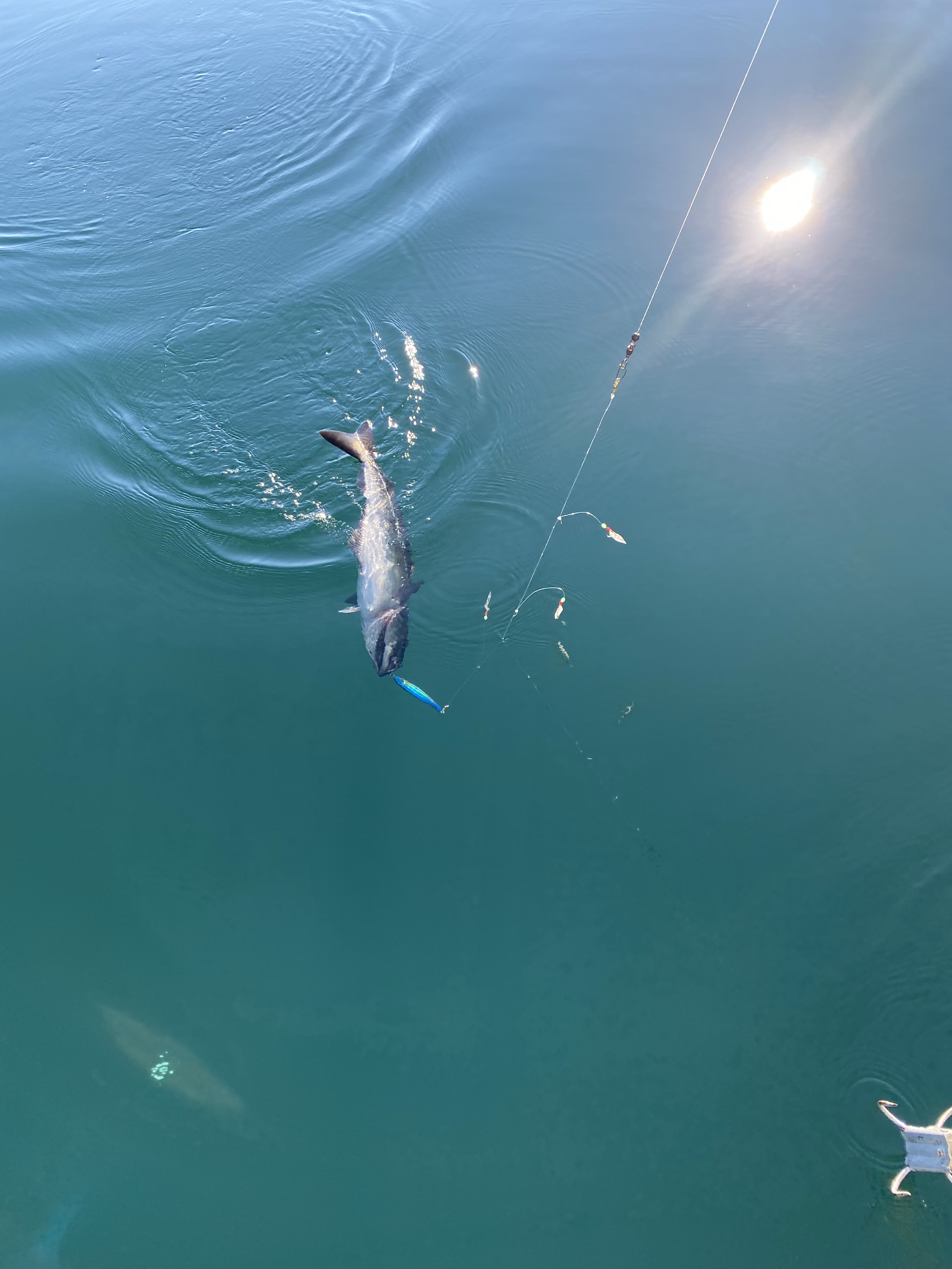 Slik gikk det dænna gongen. Kveita vant. Guiden anslo vekta tell ca 70 kg. Får mjølkesyre ti arma tå slikt. Men, går itte an å gi seg. Vi prøvde et par timer tell vi, men drog tomhendte innatt. Vi får tru det går bære imorra da 🥴 Nå blir det en dusj og mæddan, og sea blir det rolig tell imorra tenkje je. Vi hørs da og vi 😃