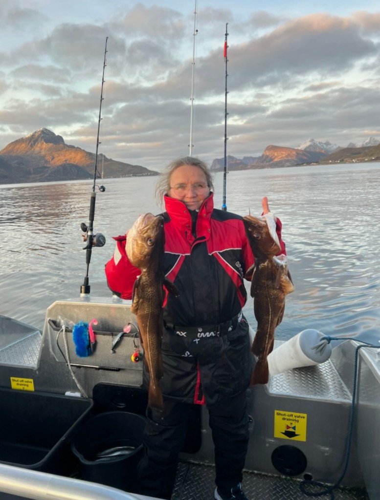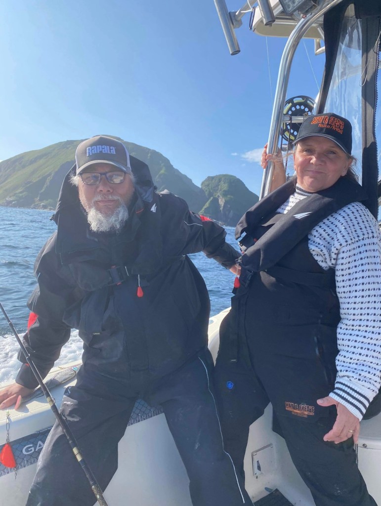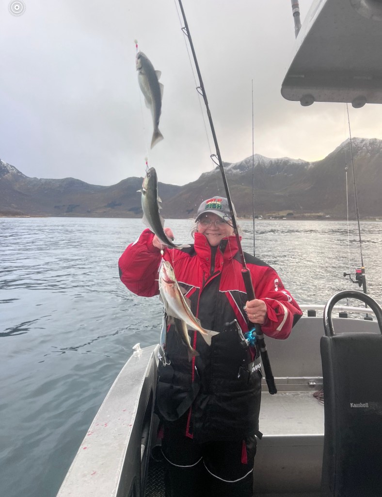 Fy trøen skinn….I dag kom mårran brått æltså 😴 Vi sto opp klokka seks med forskjellige varianter tå smale auer. Fekk ordne litt frokost og kaffe, pakke og vaske hytta. Så var det å rese ner på brygga tell klokka var åtte. Hæn som rår over været var i godlune idag og hæn. Solskinn og blikk hav, kan itte bli bære enn det, og ætter bære en bitteliten kjøretur dukka fisken opp på ekkoloddet hass John 🤗🎣🎣. Ælle slæppte uti og jaggu bet det på med en gong 😃