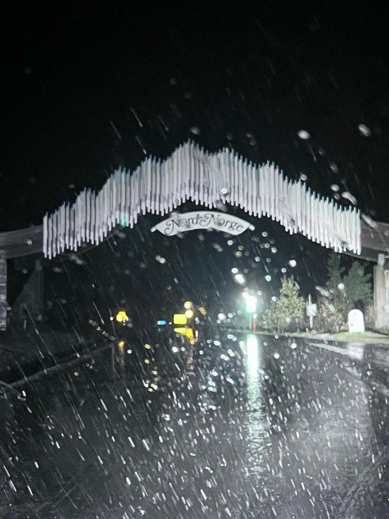 Vi har kjørd i all slags vær på tur’n- sol, regn og snøsludd, med det har itte vøri glatt på vægen enda heldigvis.