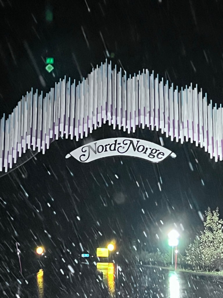 Passerte den berømte buen i år og, denni gongen i dagslys. Syns mæssom’n var like fin i mørt’n ifjol je men. Je syns og vi har brukt lang tid i år, men det kæn ha sammenheng med at skribenten er passasjer og hæn som itte huske vægen kjøre 🫡🫣 Vi har nå iallfall vørti sams om å ta ei overnatting på tur’n oppover. Mosjøen passe fint, da er det att 16 mil tel Bodø imorra. Mat ville vi ha og, så da vart det Spareribs i bar’n på hotellet. God mat men mye tå’n havne sjølsagt på klea tell skribenten😬Ferga til Moskenes går itte før kvart på fæm på æftan, så rekk’n å komme fram når det attpåtell er lyst ute 😜
