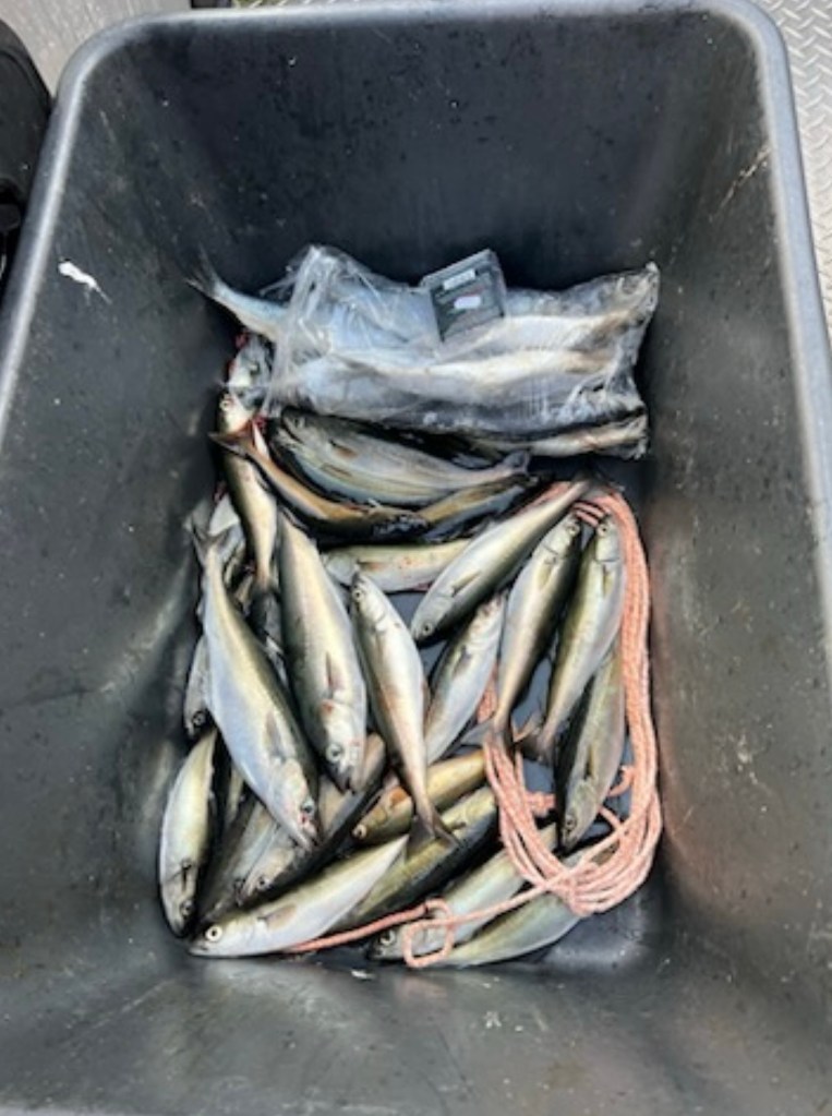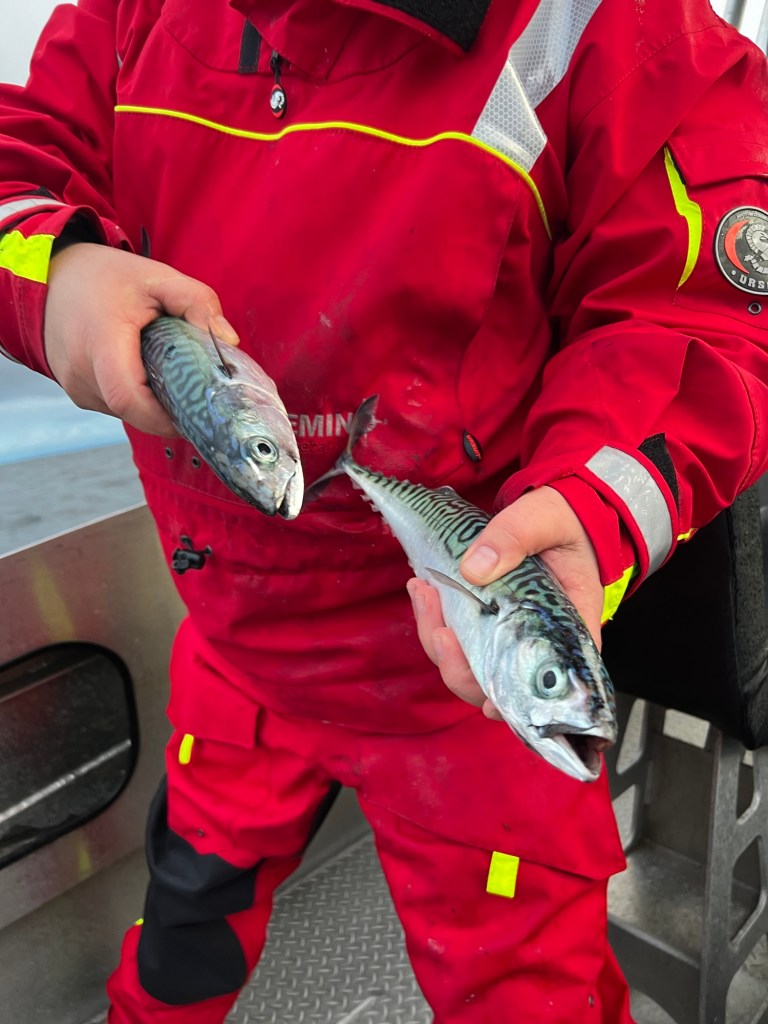 Ælle fekk fisk og vi tog opp torsk,sei,lyr,hvitting,makrell og sild. To store isoporkasser tilsammen.