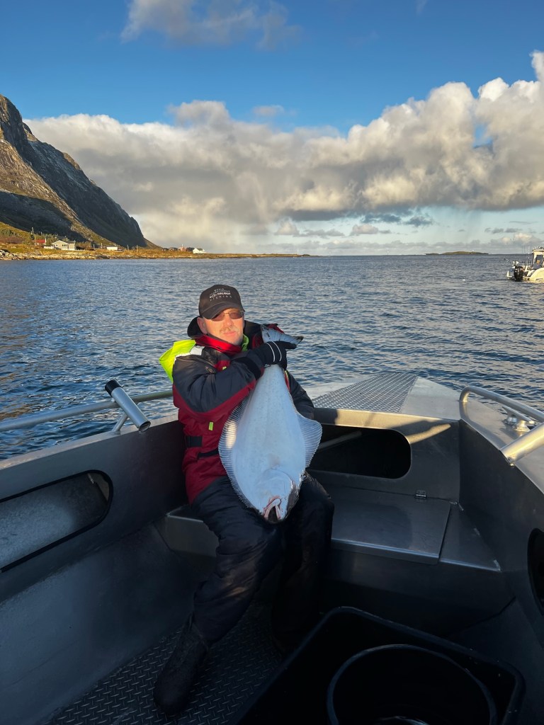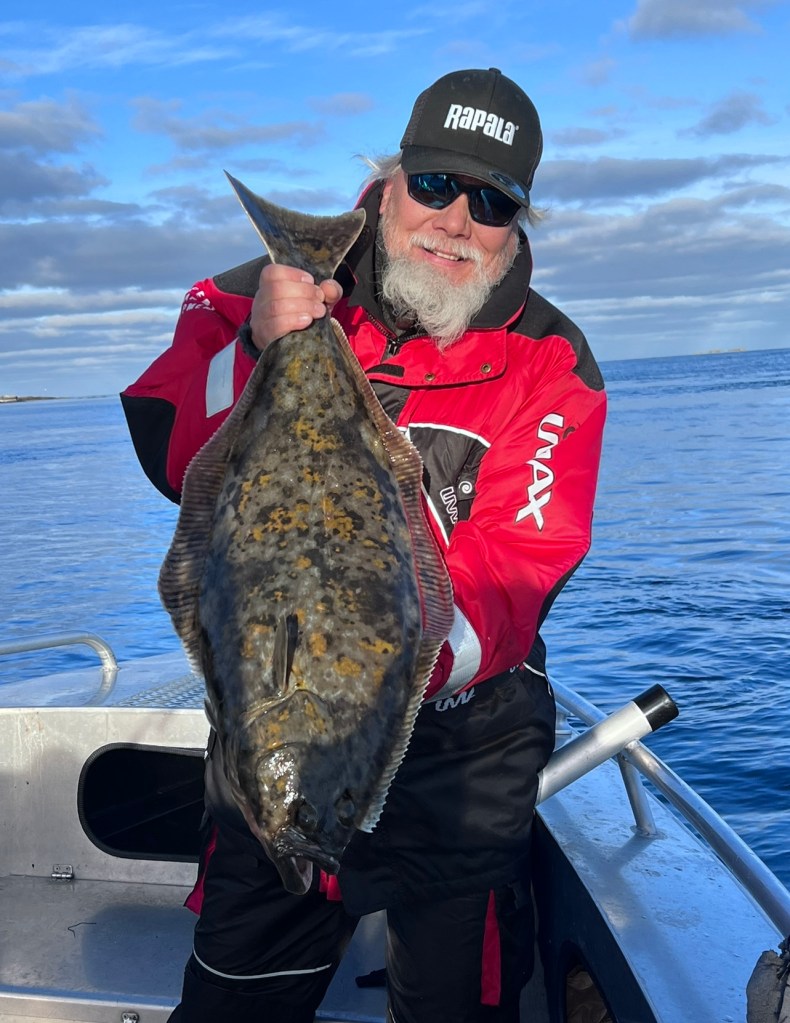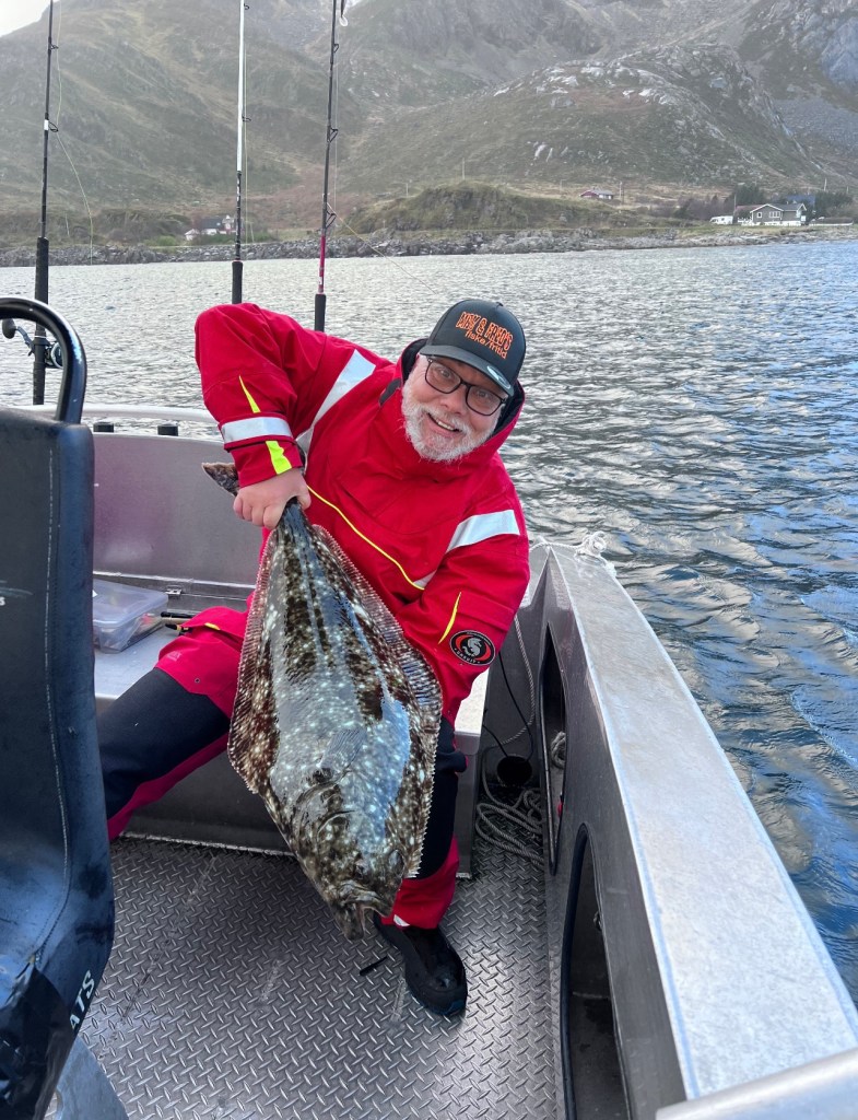 Ætter en liten kamp, fekk’n opp si første kveite. 90 cm den og. Vart mæssom en skikkelig blidfis tå hæn og. ‘’ Je vart da helt skjælven je’’ sa’n😃 Artig. Vi gratulerer🎣💐😃