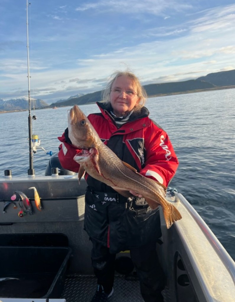 Je har jo tålmodighet som ei loppe da, så je vart lei tå å stå med stanga i handa og vente. Da je såg at vi hadde store utslag med fisk på ekkoloddet satte je stanga mi i stangholdern og begynte med stang nr 2 for å få opp mer agnfisk je da. Gluphue😬 For å trur døkk skjer når je driv med det ? Joda, stor fisk bortpå stanga mi vet du. Så den fekk je jo itte 🤯 Skulle nesten tru vi drev med bevaring tå kveitestammen i Norge a vet du. Gubben vart etterhvert utålmodig og grinete og. Gjorde itte ting bære da det hele tia tikke inn bilder fra dom fire andre båta. Dom hadde fått bra med fisk vøtt 🥴Er jo farken så typisk da. Men, men, sånn er det. Var itte meninga vi skulle ha med øss kveite neratt. Så da tenkje je at istelle før å vise bilder tå fisk, kan je vise døkk fler bilder tå åssen det ser ut her 😍