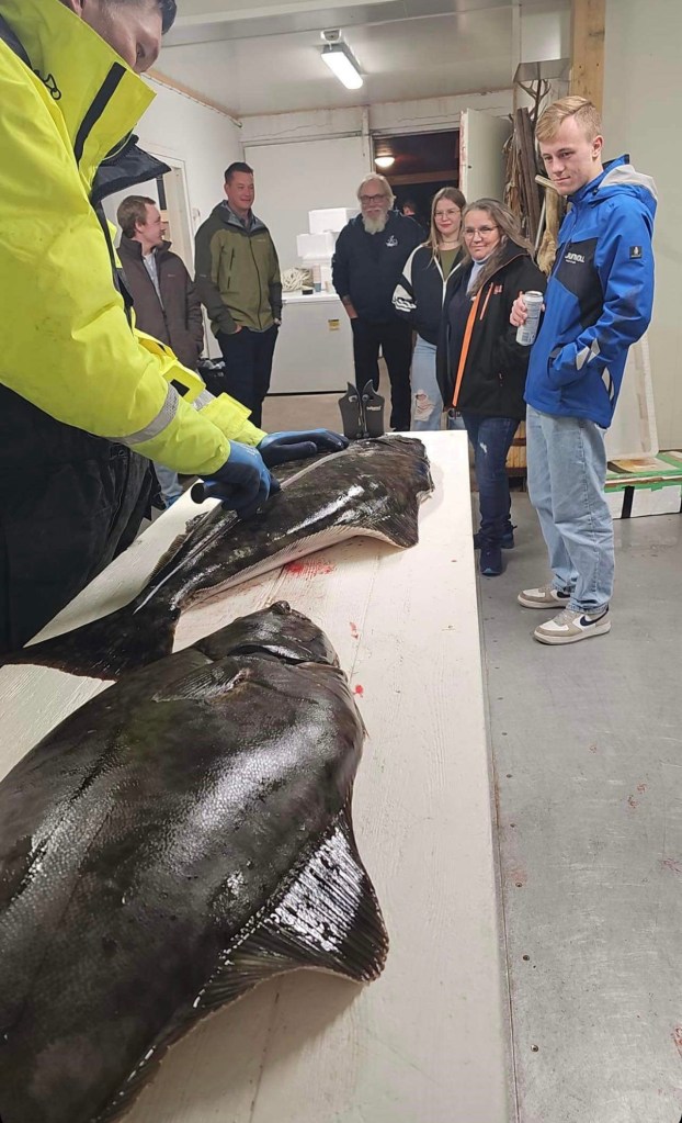 Ålreit da. Døkk skar få sjå kveite. Bære synd at vi itte fekk noen i båten. Men vi gratulerer de som klarte det 😃 Begge de to på bordet var over meter’n lange. Vekt 15+