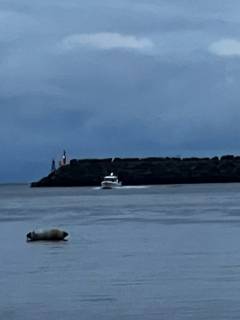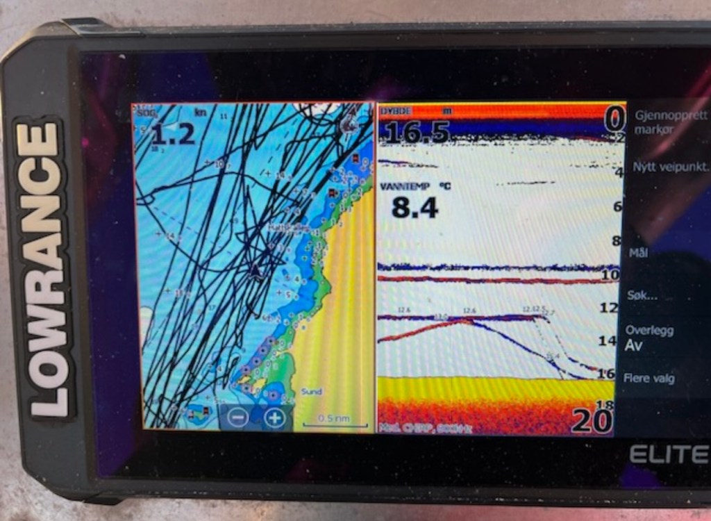 Men,men-det går stort sett greit – ei stønn. Med et under gjennomsnittet dårlig ekkolodd, ser vi itte å hen ell om det er fisk der vi kjører, så vi bestæmmer øss etterhvert før å krysse over sjøen og kjøre nordover att mot båthavna. Begynt å blåse ganske kraftig og, men er ganske grett langs land oppover att. Da vi nærme øss Sputneset vet vi at det pleie å ligga ei garnlenka utover i sjøen, så normalt sett byne vi å legga øss ut i god tid før vi kjem åt den. Denni gongen har da gluphue bak roret tenkt at vi skar kjøre litt nærmere enn vi pleie for å sjå om det er fisk innved lændet rett før garnlenka. Det går som tenkt det, ei stønn. Det geniet itte tenkte på var sønnavind 🌬️😲 Utrulig å den tæk tak i ei slik ei båtside altså. Vind dytte og skøv båten nærmere og nærmere garnlenka, og da blir det tell slutt ugrett bak båten skjønte je. Vart fyst kluss på samtlige liner ått hæn som hadde satt ut, før UT måtte foreta ei litt brå unnamanøver for å itte hekte ælle kroka i bøya det var meninga vi elegant skulle kjøre rundt. For hæn med ugreie ben vart det brått vanskelig å stå opprest, men hæn fekk da hævle seg. Sea fekk UT ei glose je enda slit med å få oversatt 😬 Så var det bære å ta opp alt og kjøre innover att. Fekk trøkt gubben opp i kapteinstol’n så hæn kunne manøvrere innat i havna. Etter at ælle fendera var kaste ut gikk det faktisk bemerkelseverdig greit. Itte vart det fisk hell. Fullt så greit gikk det itte da UT skulle sørge for at ælt av brytere og slik var avslått og strømmen koblet av. Fekk itte starte andre tur’n vi skulle utpå vi. Strømtomt 🫣