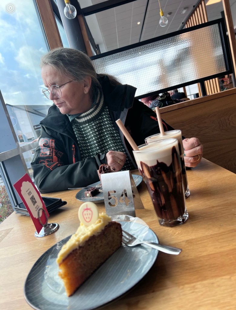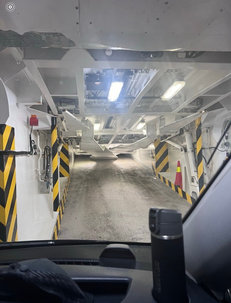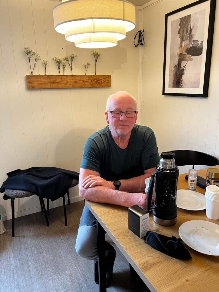 Ja ja, ætter litt kaffe og kaker, smoothie og mat på Egon ( itte ælt på en gong altså) så drog vi ned på brygga klokka hælv tre førr å stelle øss i kø., fræmst…. Ferja skulle jo gå ALLEREDE🤬 klokka hælv fem. Så heldige øss fekk kjøre om bord fysst slik at vi ble ståendes slik at vi kjører tå att sist 🫡