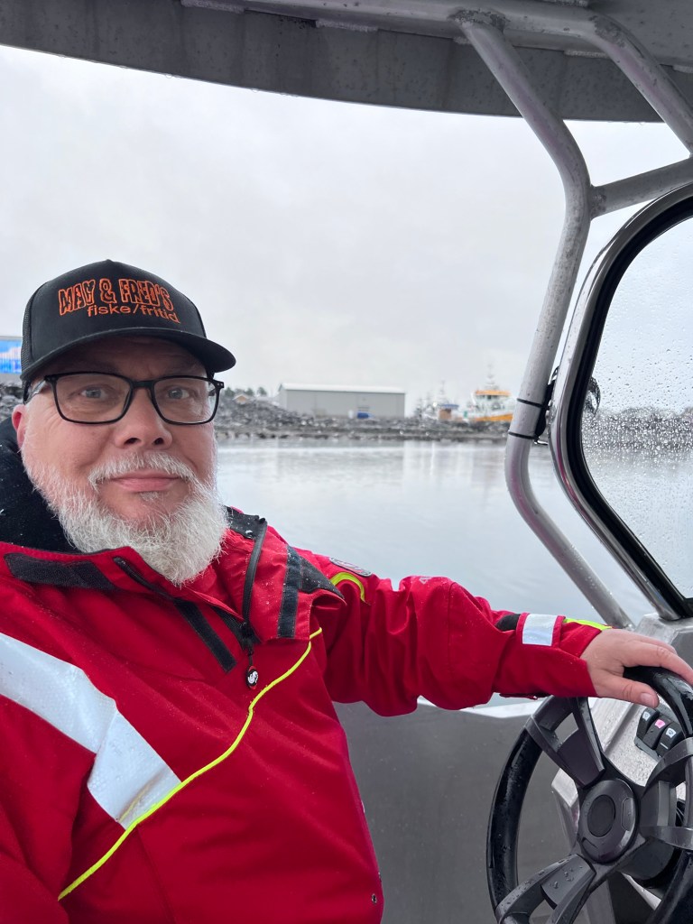 Jaja, det får stå tell tenkte vi. Fred skulle da sætte seg bak roret og bakke herligheten ut av plassen sin. Itte helt enkelt å komma oppi stol’n nei ….Fy trøen det var trangt asså. Har itte helt normale ben hæn a vøtt. Det ene bøye seg normalt i kneet, mens det andre bøye seg sånn ca der andre har åkle. Antydning tel maga på figur’n og 🫣 Å fy trøen før pargas å få dytte dænna kar’n på plass. Men etter ei lita eftasøkt kom’n seg da på plass og rygge ut. Så var det å byne å lempe opp fendere da. Det er mæssom jobben åt UT som er lettest på foten det da 🦛 🥴 Var da full nesten på Fiskvik før ælle fendera var ombord. Utrulig å trang denna nye båten vart asså 😳