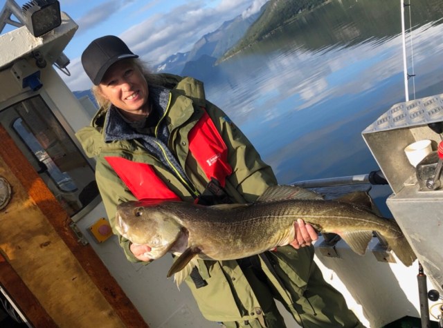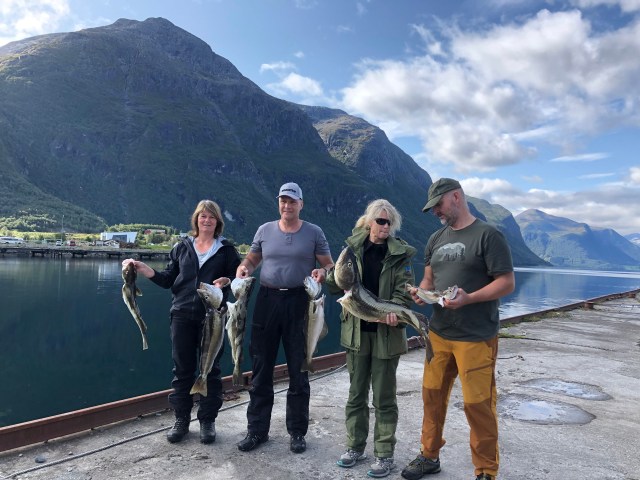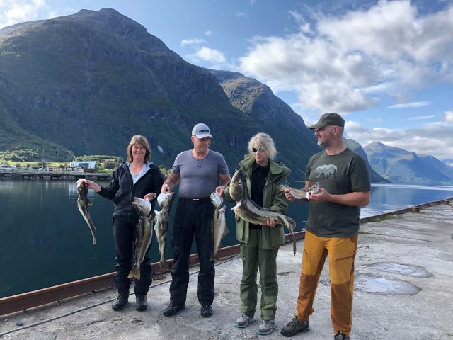 Fy trøen skinn….I dag kom mårran brått æltså 😴 Vi sto opp klokka seks med forskjellige varianter tå smale auer. Fekk ordne litt frokost og kaffe, pakke og vaske hytta. Så var det å rese ner på brygga tell klokka var åtte. Hæn som rår over været var i godlune idag og hæn. Solskinn og blikk hav, kan itte bli bære enn det, og ætter bære en bitteliten kjøretur dukka fisken opp på ekkoloddet hass John 🤗🎣🎣. Ælle slæppte uti og jaggu bet det på med en gong 😃